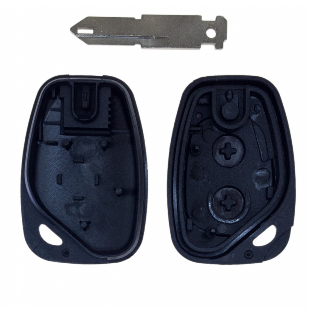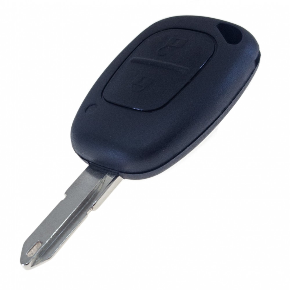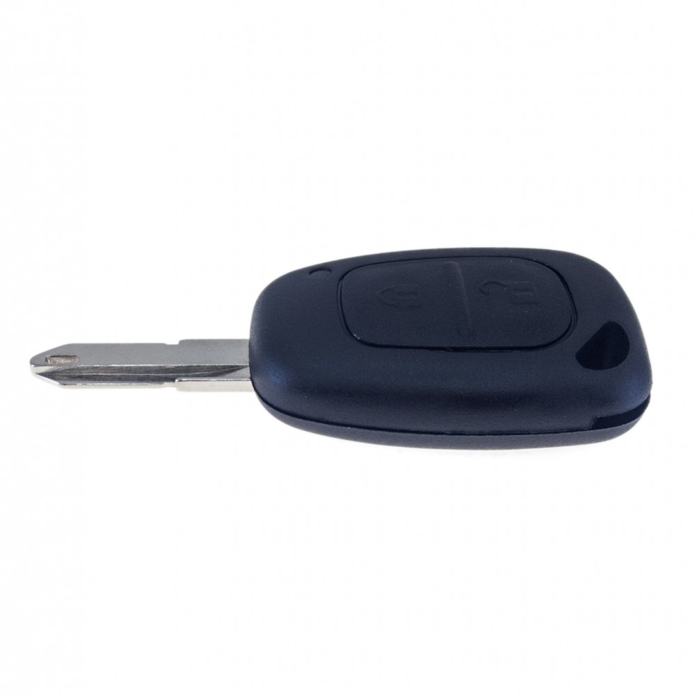 Náhradní obal klíče pro vozy Renault, Opel s 2-tlačítkovým ovladačem. Planžeta klíče NE73. Do klíče je nutno vložit z původního klíče elektroniku dálkového ovládání a čip imobilizéru (transpondér), planžetu klíče je třeba nechat vyfrézovat podle tvaru originálního klíče.