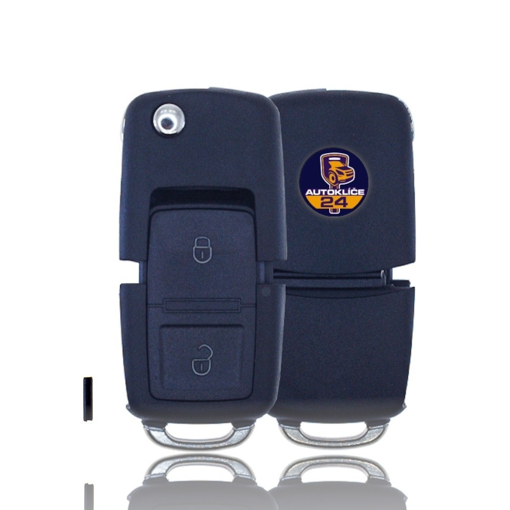 Náhradní dálkový ovladač centrálního zamykání do vystřelovacího klíče pro vozy koncernu VW. Dálkový ovladač je se dvěmi tlačítky. Náhrada originálního ovladače 1J0959753N. Tento klíč neobsahuje čip a planžetu, ktere lze přehodit z originalního klíče.