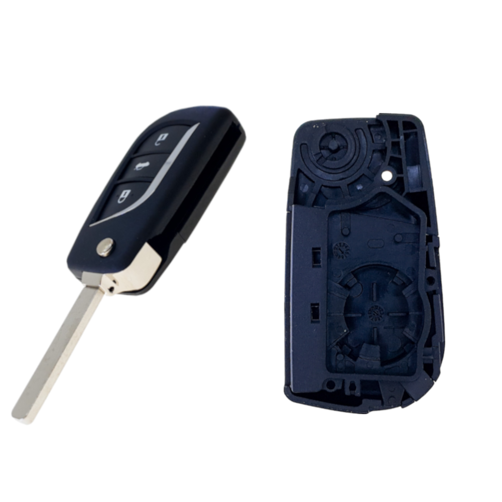 Obal klíče Toyota 3tl. vykl. VA2T NM (bez elektroniky a čipu imobilizéru). Do klíče je nutno vložit z původního klíče elektroniku dálkového ovládání a čip imobilizéru. Planžetu klíče je třeba nechat vyfrézovat podle tvaru originálního klíče.